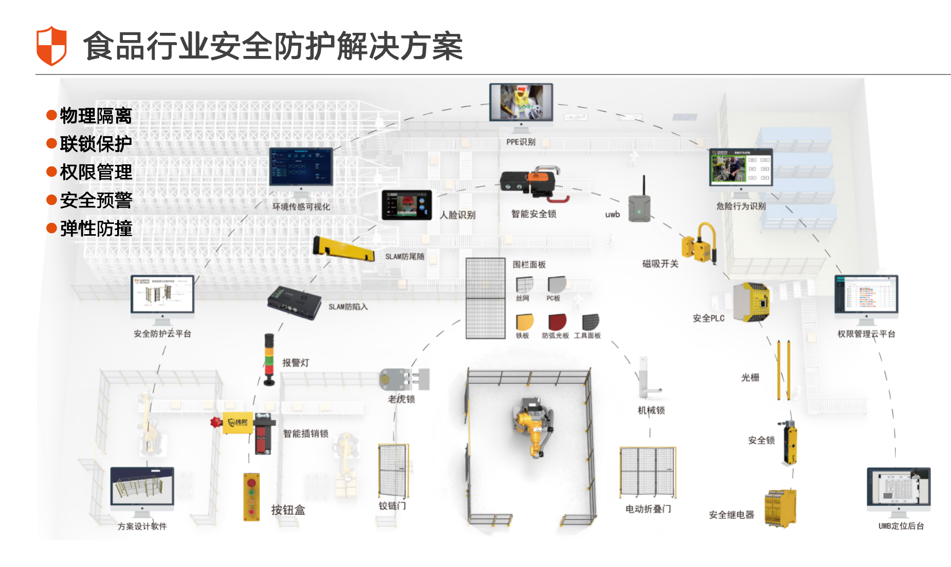ͨ¹ýΧÀ¸¶ÔÉ豸½øÐÐÎïÀí¸ôÀ룬·ÀÖ¹ÎÞ¹ØÈËÔ±½øÈëÊÂÇéÇøµÄͬʱ·ÀÖ¹»úÆ÷ÈË¿ÉÄÜ·¢ÉúÊÖ±ÛÍÑÂäµÈÒâÍâ¹ÊÕ϶øÔì³ÉµÄÎóÉË¡£ ͨ¹ýÖÇÄÜËøµÈÄþ¾²ÁªËøÏµÍ³£¬ÊµÏÖȨÏÞ¹ÜÀí£¬±£ÕÏ×÷ÒµÄþ¾²¡¢±ãÓÚÉ豸¼ìÐÞÄþ¾²½øÐС£ ͨ¹ýÊÓ¾õʶ±ðϵͳץȡÊÂÇéÈËÔ±µÄÎÀÉú×°±¸ÊÇ·ñºÏÀí£¬´òÔì5A¼¶Ê³Æ·Äþ¾²Éú²ú¡£